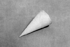 DESCRIPTION: The cone resting on its base is in stable equilibrium. Balancing on its tip, the cone is in unstable equilibrium. Lying on its side, it is in neutral equilibrium.