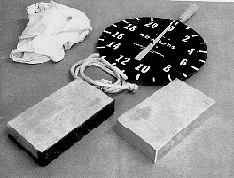 EQUIPMENT: Two aluminum blocks, one having felt on two sides, spring scale with handle, rope, cleaning rag.