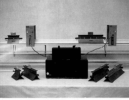 DESCRIPTION: Air track gliders on a frictionless track are used to illustrate elastic collisions. A photocell gate timer is used to measure the time taken by a 5 cm tab on the glider to pass through the photocell gate and thus to obtain the velocity of the gliders. To obtain more than one timer reading the gates must be positioned carefully and the timer reset between readings using the cable-mounted reset switch.