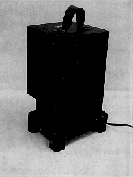 DESCRIPTION: Placing the "suitcase" gyroscope box on its base connects power to the motor, causing the gyroscope to spin. Lifting the gyroscope from its base disengages the motor and allows the gyroscope to spin freely. While carrying the box, the experimenter may move about the room, turning, lifting the box, etc., to experience the gyroscopic forces.