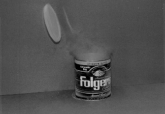 DESCRIPTION: Pour some liquid nitrogen into a can and install the plastic lid. The liquid nitrogen heats up, changes to a gas, and blows the lid. Repeat for students who blinked.