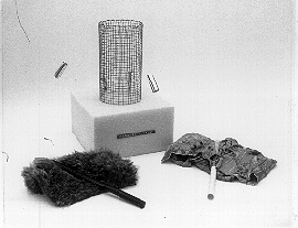 EQUIPMENT: Wire screen Faraday cage with pith balls and charging materials.