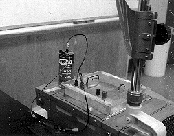 EQUIPMENT: Small coil mounted in plastic base with compass needle attached, battery, and overhead projector.