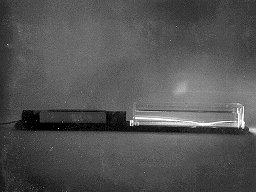 DESCRIPTION: Placing sugar along the bottom of a long, narrow water tank, as the sugar dissolves it creates an index of refraction gradient with the greater index of refraction nearer the bottom of the tank. A laser beam bends continuously in t he sugar solution and reflects off the bottom of the tank, as shown in the photograph. Observation of the path of the laser beam is enhanced by adding a pinch of powdered coffee creamer.