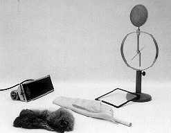 DESCRIPTION: A zinc plate connected to an electroscope and charged positive will not discharge under the influence of ultraviolet radiation from the black light. When the plate is charged negative, however, UV light will discharge the plate, as indicated by the electrometer. A 1/8" glass plate inserted into the light from theUV bulb prevents passage of UV and the discharge ceases. Removing the glass plate allows the discharge to continue.