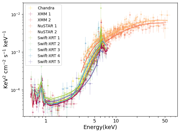 Simultaneous fitting of 10 X-ray observations of Mrk 477, showing spectral variability attributed to changes in obscuration. From Torres-Albà+2025.