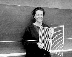 Argue that this is a good analogy to light waves, which are also transverse waves. Actually, a light polarizer works a bit differently, but what the heck. See Demonstration M7-01: MICROWAVES - POLARIZATION.