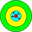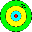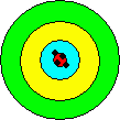 all uniform and centered on the bull's eye. This differs from the first figure in