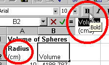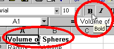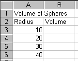 table "Volume of Spheres". Put this title in cell A1.