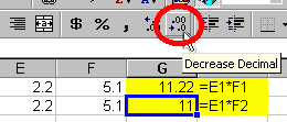 shows the how to use the Decrease Decimal Button to reduce the number