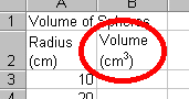 as cm^3 in cell B2. This is a common method that students use to