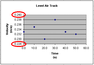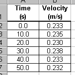 However, when Excel plots the data, the scale of the velocity axis is such that the data appears to be widely varying as shown below.