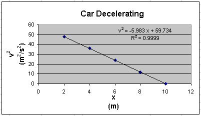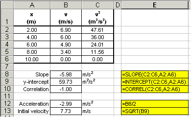 Note that in order to find the acceleration, we must divide the slope by 2 and to find the initial velocity, we must take the square root of the y-intercept.